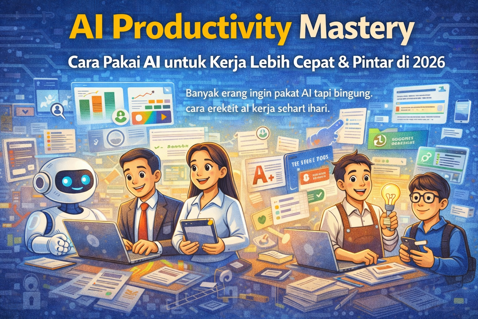Cara Menggunakan AI untuk Kerja 5-10x Lebih Cepat dan Pintar Di tahun 2026, orang yang menguasai AI bukan hanya lebih produktif — mereka jauh meninggalkan kompetitornya. Kursus ini dirancang khusus untuk orang sibuk yang ingin: Menyelesaikan pekerjaan lebih cepat tanpa kualitas turun Menghasilkan konten, email, laporan, dan ide bisnis dalam…