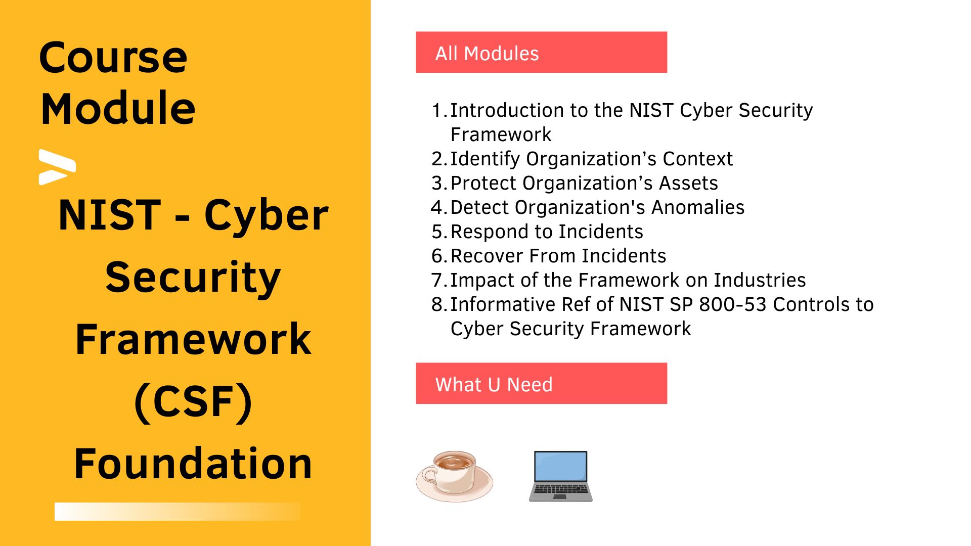 Kursus ini dirancang untuk memberikan pemahaman mendalam tentang prinsip-prinsip dasar dan praktik terbaik yang diuraikan dalam standar NIST. Selama perjalanan pembelajaran ini, Anda akan diperkenalkan pada kerangka kerja NIST Cybersecurity Framework, yang mencakup identifikasi, perlindungan, deteksi, respons, dan pemulihan dari insiden keamanan.